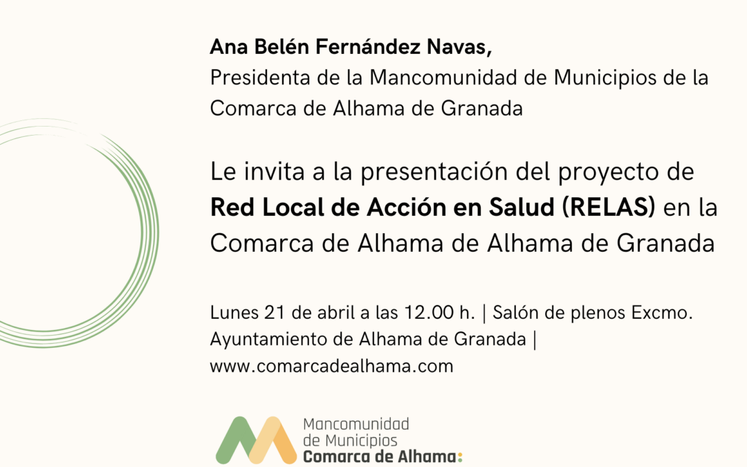 El pasado 21 de abril, en el salón de plenos del Ayuntamiento de Alhama de Granada, se llevó a cabo la presentación oficial del proyecto RELAS (Red Local de Acción en Salud), una iniciativa pionera impulsada por la Mancomunidad de Municipios de la Comarca de Alhama en...
